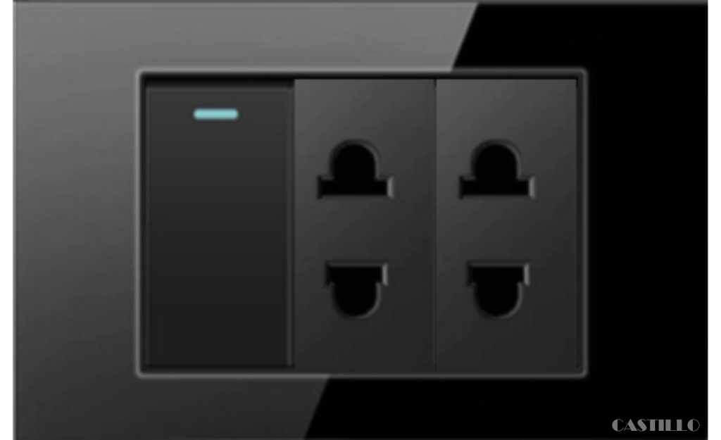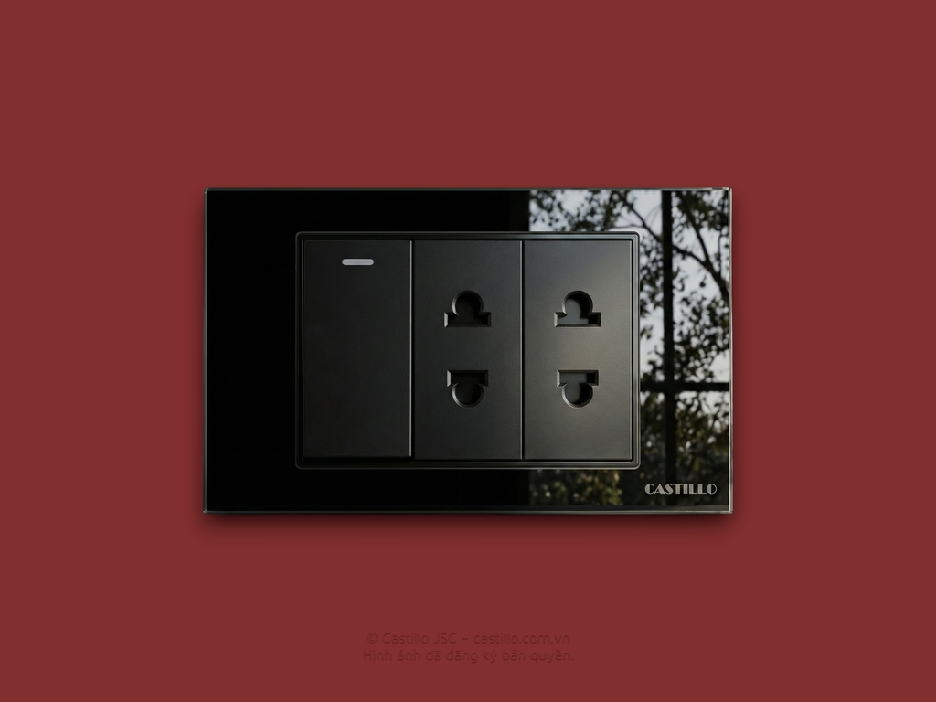 1 Công tắc + 2 Ổ cắm Kính cường lực ĐEN