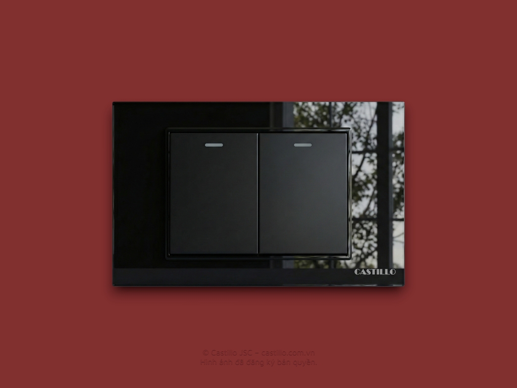 Công tắc 2 phím Kính cường lực ĐEN